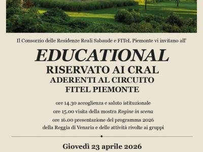 Il Consorzio delle Residenze Reali Sabaude e FITeL Piemonte vi invitano all' Educational alla...